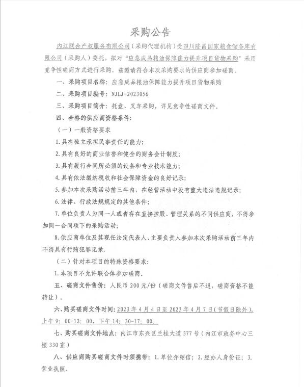 應(yīng)急成品糧油保障能力提升項(xiàng)目貨物采購采購公告