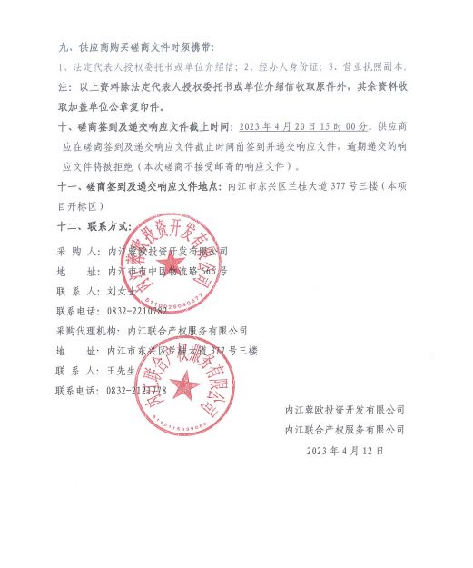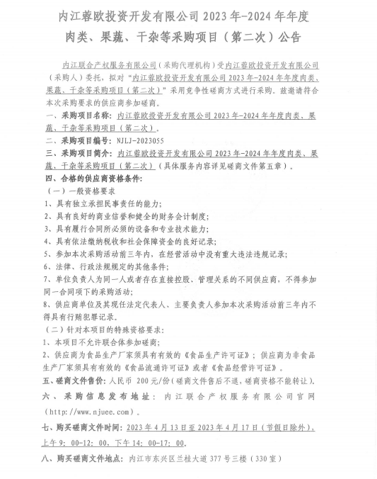 內(nèi)江蓉歐投資開發(fā)有限公司2023年-2024年年度肉類、果蔬、干雜等采購項目(第二次)采購公告