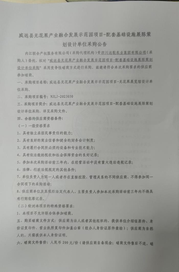 威遠(yuǎn)縣無(wú)花果產(chǎn)業(yè)融合發(fā)展示范園項(xiàng)目-配套基礎(chǔ)設(shè)施展陳策劃設(shè)計(jì)單位采購(gòu)公告