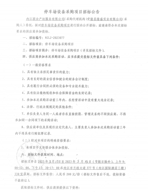 停車場設備采購項目招標公告