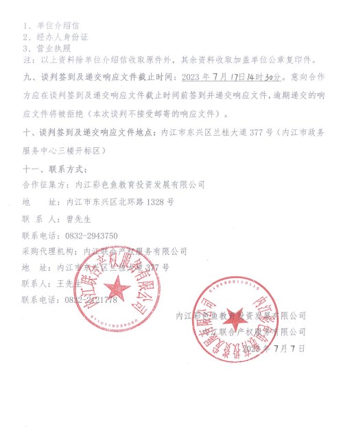 彩色魚(yú)魚(yú)小藝培訓(xùn)機(jī)構(gòu)合作談判項(xiàng)目談判邀請(qǐng)公告
