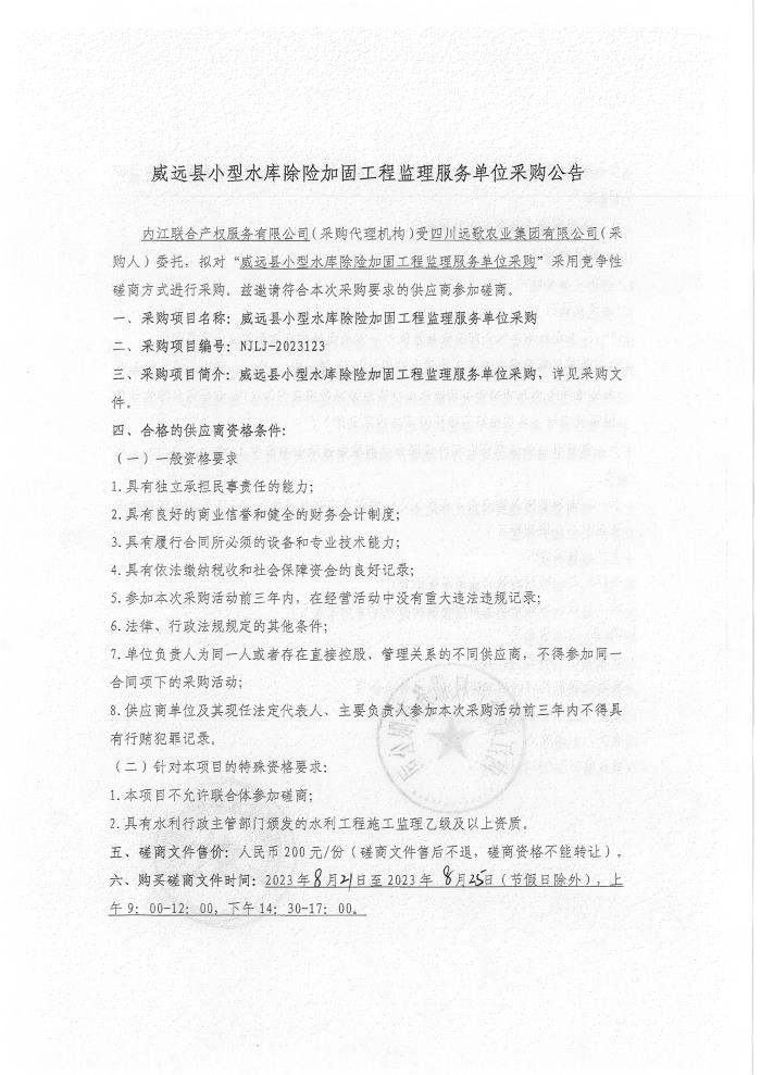 威遠(yuǎn)縣小型水庫(kù)除險(xiǎn)加固工程監(jiān)理服務(wù)單位采購(gòu)公告