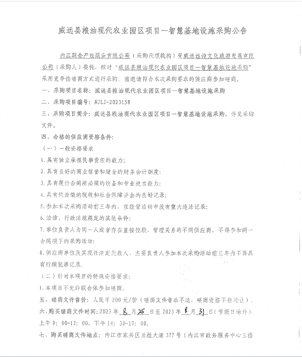 威遠(yuǎn)縣糧油現(xiàn)代農(nóng)業(yè)園區(qū)項(xiàng)目—智慧基地設(shè)施采購公告