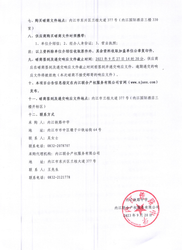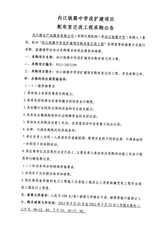 內(nèi)江鐵路中學(xué)改擴(kuò)建項(xiàng)目配電室遷改工程采購公告
