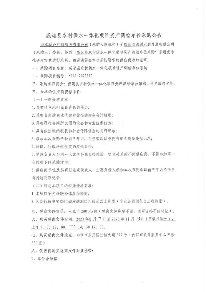威遠縣農(nóng)村供水一體化項目資產(chǎn)測繪單位采購公告