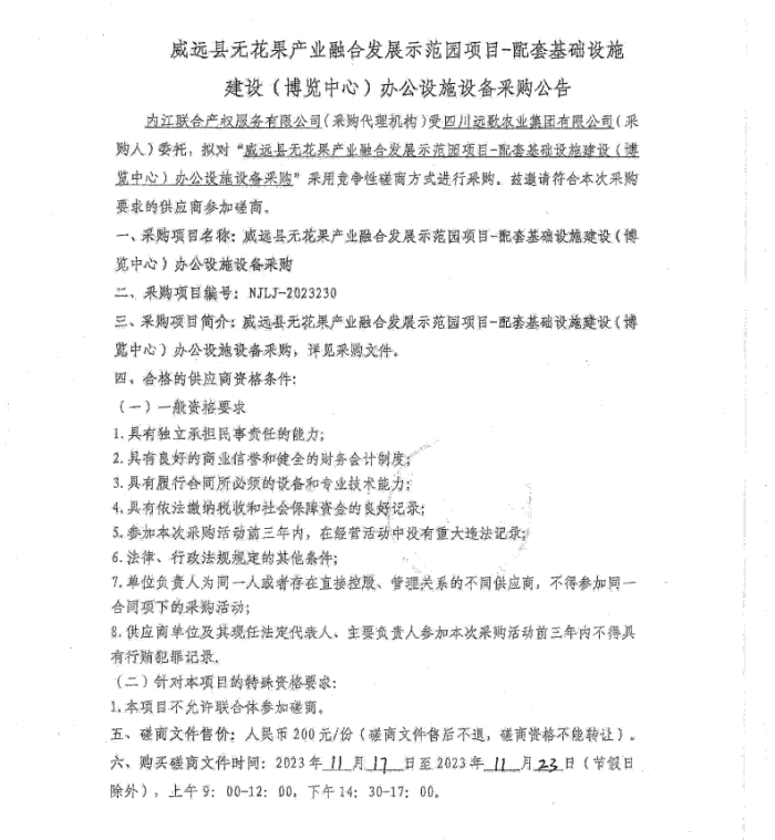威遠縣無花果產(chǎn)業(yè)融合發(fā)展示范園項目-配套基礎(chǔ)設(shè)施建設(shè)(博覽中心)辦公設(shè)施設(shè)備采購公告