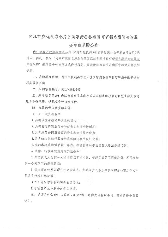 內(nèi)江市威遠(yuǎn)縣東北片區(qū)國家儲(chǔ)備林項(xiàng)目可研報(bào)告融資咨詢服務(wù)單位采購公告