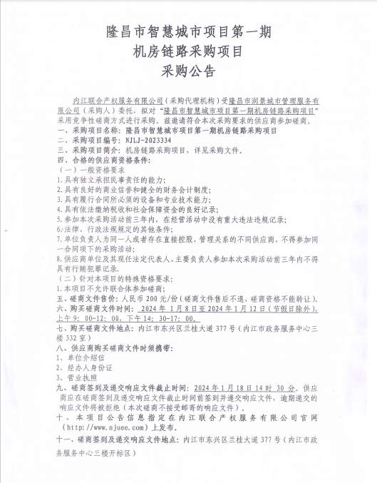 隆昌市智慧城市項(xiàng)目第一期機(jī)房鏈路采購(gòu)項(xiàng)目采購(gòu)公告