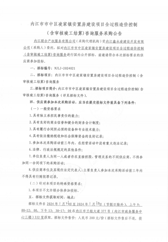 內(nèi)江市市中區(qū)凌家鎮(zhèn)安置房建設項目全過程造價控制(含審核竣工結算)咨詢服務采購公告