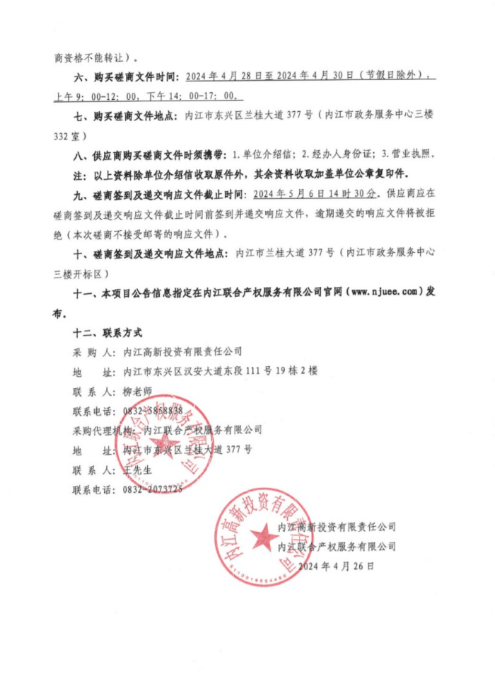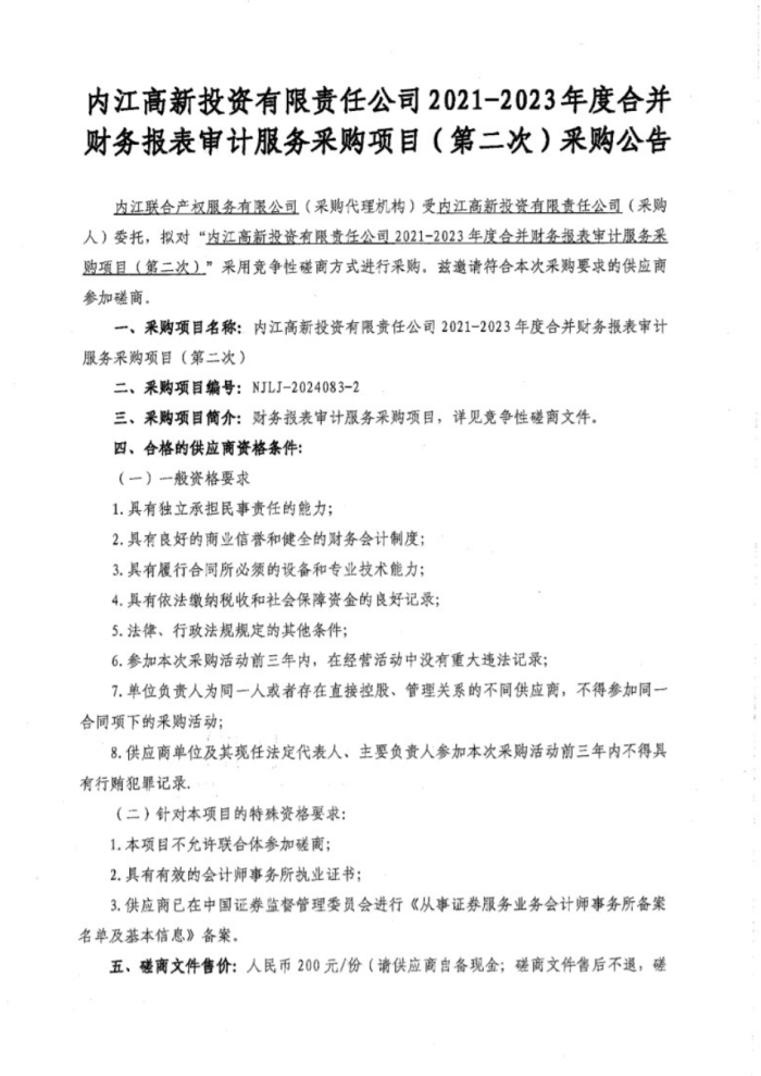 內江高新投資有限責任公司2021-2023年度合并財務報表審計服務采購項目(第二次)采購公告