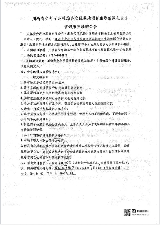 川渝青少年示范性綜合實(shí)踐基地項(xiàng)目主題館深化設(shè)計(jì)咨詢服務(wù)采購(gòu)公告