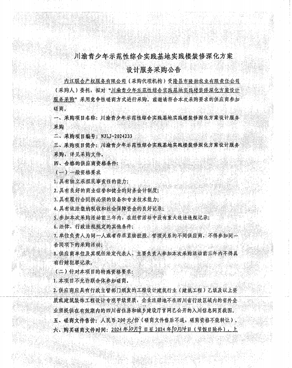 川渝青少年示范性綜合實(shí)踐基地實(shí)踐樓裝修深化方案設(shè)計(jì)服務(wù)采購(gòu)采購(gòu)公告