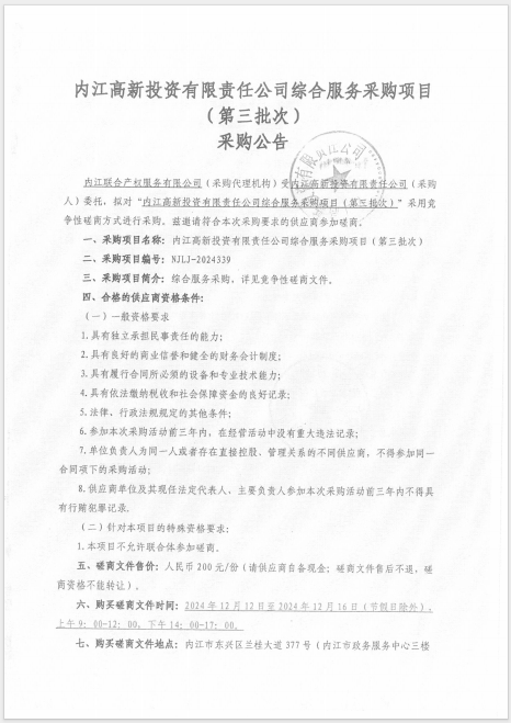 內(nèi)江高新投資有限責(zé)任公司綜合服務(wù)采購(gòu)項(xiàng)目(第三批次)