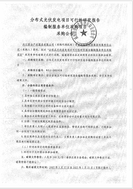 分布式光伏發(fā)電項目可行性研究報告編制服務(wù)單位采購項目采購公告