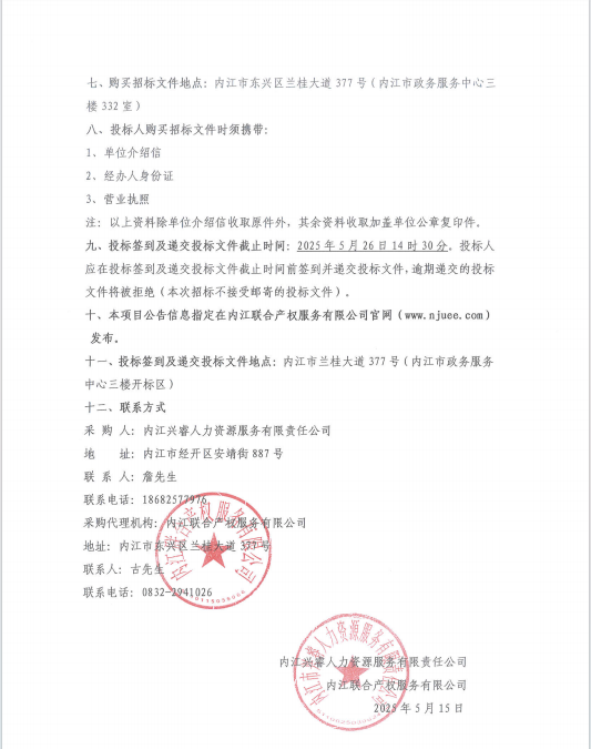 內(nèi)江興睿人力資源服務(wù)有限責(zé)任公司人力資源合作商服務(wù)項目采購公告