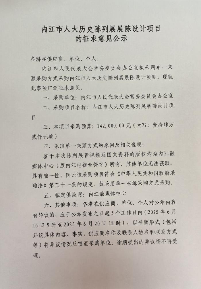 內(nèi)江市人大歷史陳列展展陳設(shè)計項目的征求意見公示