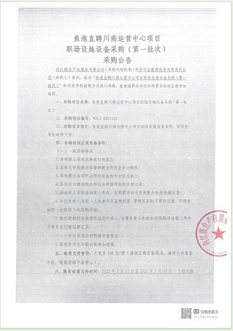 魚泡直聘川南運營中心項目職場設(shè)施設(shè)備采購(第一批次)采購公告