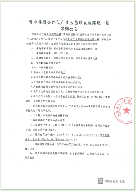 資中縣服務外包產(chǎn)業(yè)園基礎設施建設一期采購項目