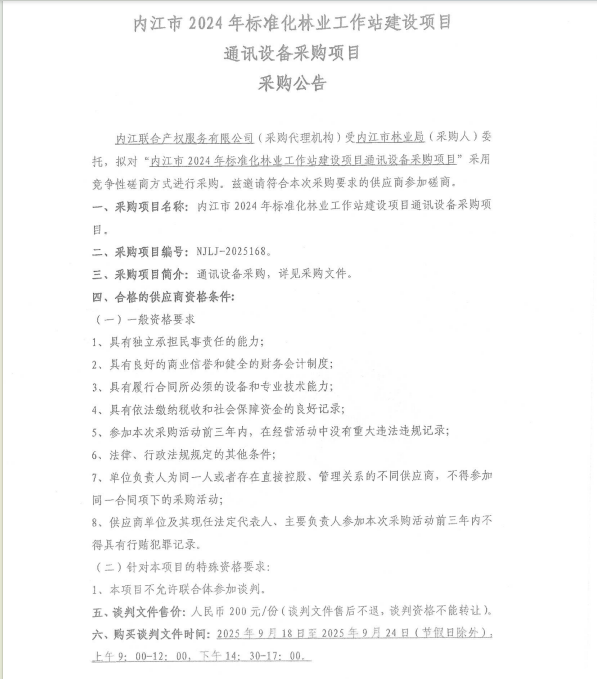 內(nèi)江市2024年標(biāo)準(zhǔn)化林業(yè)工作站建設(shè)項(xiàng)目通訊設(shè)備采購項(xiàng)目采購公告