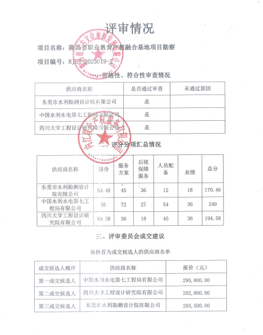 隆昌市職業(yè)教育產(chǎn)教融合基地項目勘察結(jié)果公告