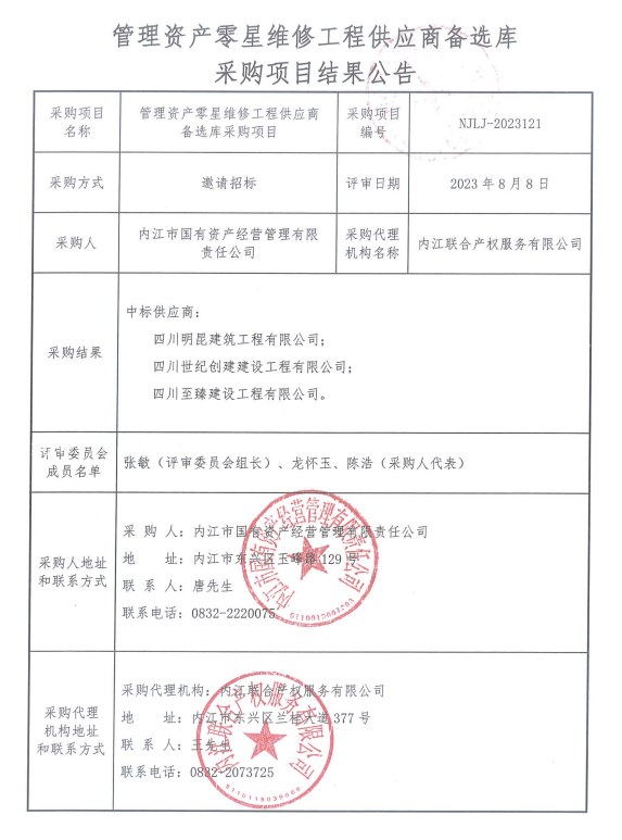 管理資產(chǎn)零星維修工程供應(yīng)商備選庫采購項目結(jié)果公告