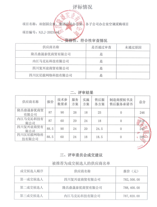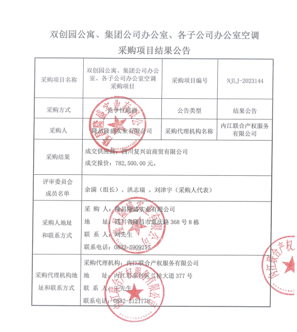 雙創(chuàng)園公寓、集團(tuán)公司辦公室、各子公司辦公室空調(diào)采購(gòu)項(xiàng)目結(jié)果公告