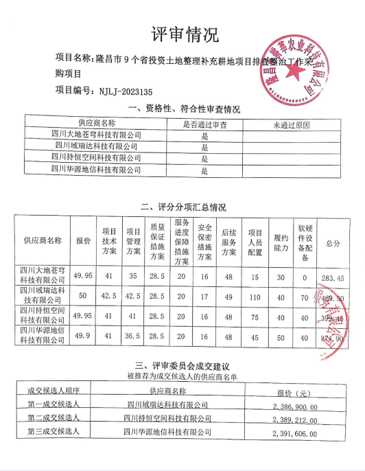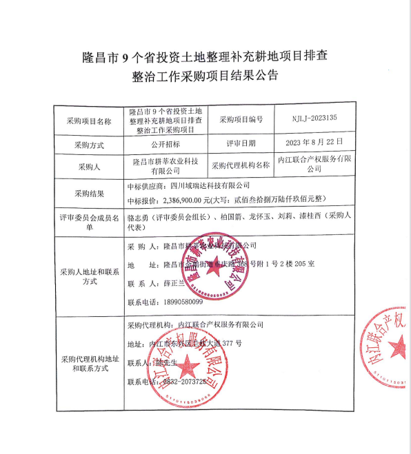 隆昌市9個省投資土地整理補充耕地項目排查整治工作采購項目結果公告