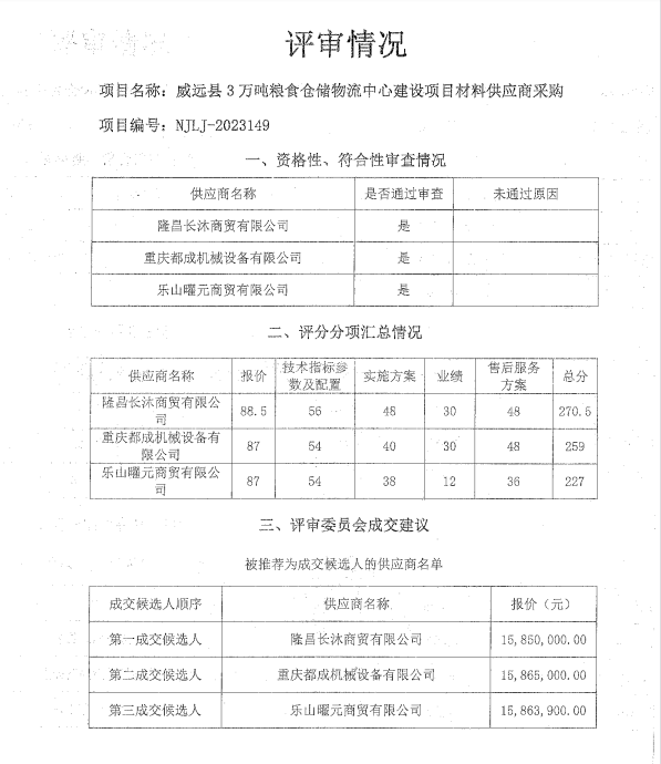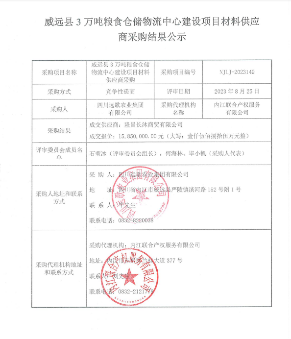 威遠縣3萬噸糧食倉儲物流中心建設(shè)項目材料供應(yīng)商采購結(jié)果公示