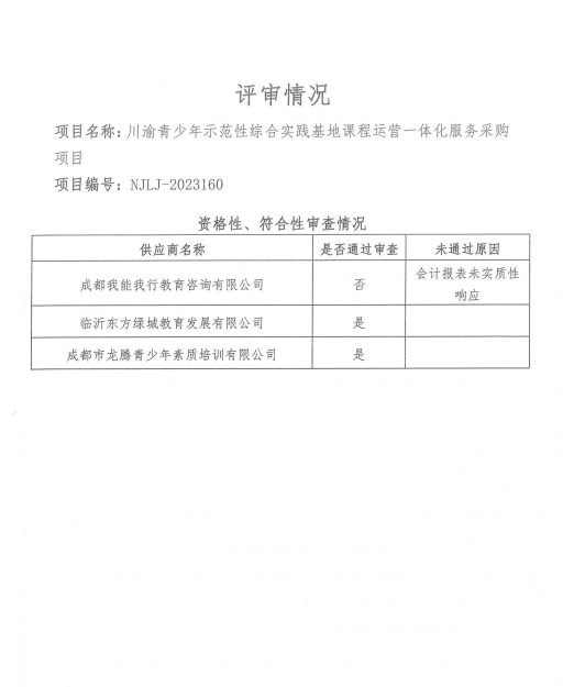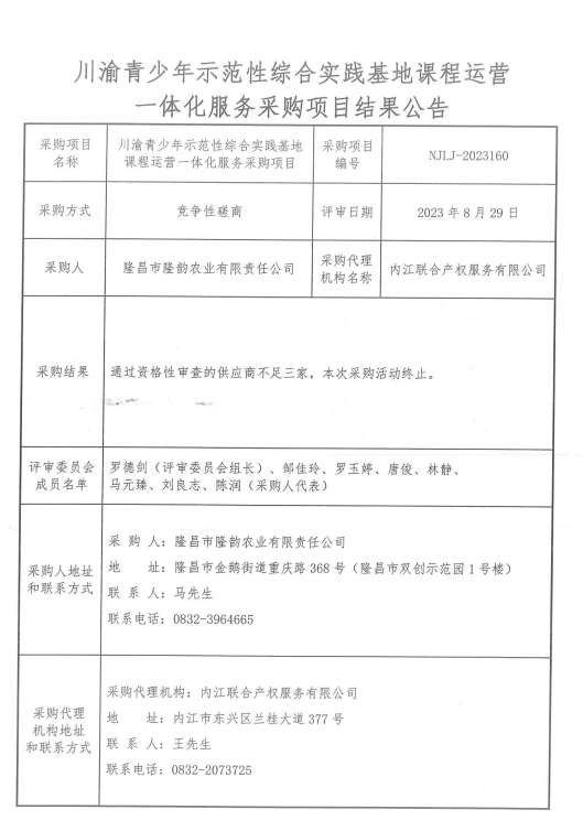 川渝青少年示范性綜合實踐基地課程運營一體化服務(wù)采購項目結(jié)果公告