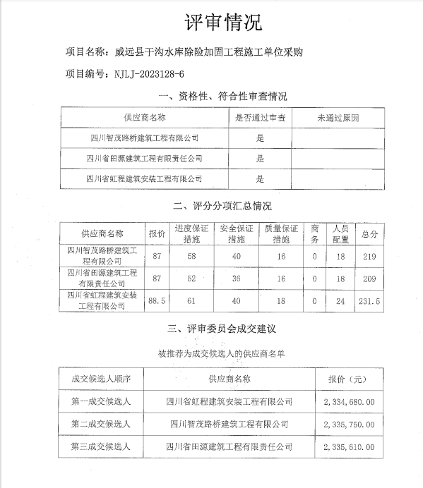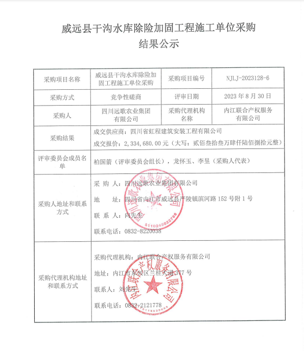 威遠縣干溝水庫除險加固工程施工單位采購結(jié)果公示