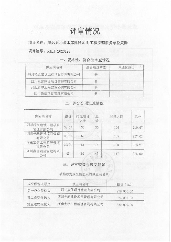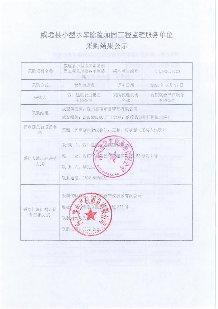 威遠(yuǎn)縣小型水庫除險加固工程監(jiān)理服務(wù)單位采購結(jié)果公示