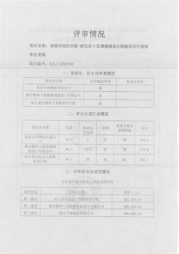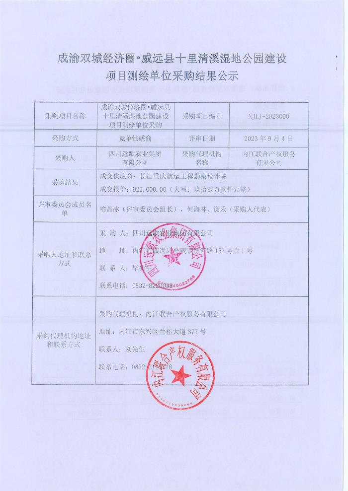 成渝雙城經(jīng)濟(jì)圈?威遠(yuǎn)縣十里清溪濕地公園建設(shè)項(xiàng)目測繪單位采購結(jié)果公示