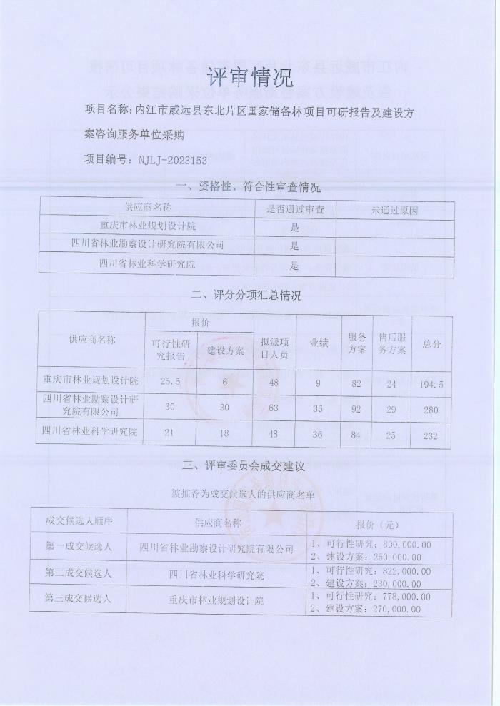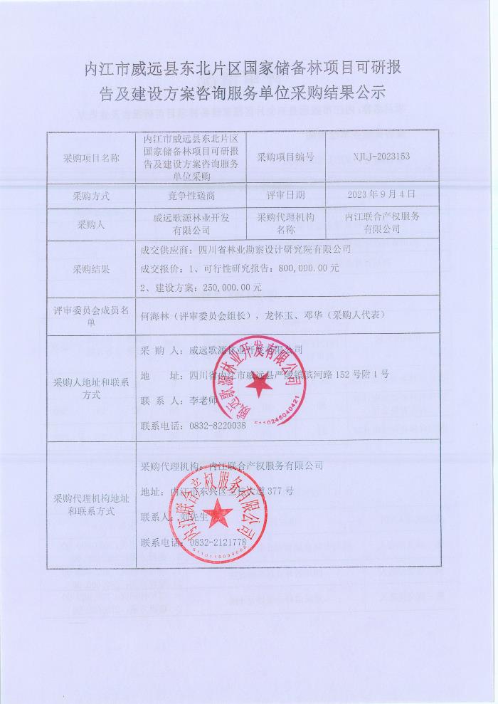 內(nèi)江市威遠(yuǎn)縣東北片區(qū)國家儲備林項(xiàng)目可研報告及建設(shè)方案咨詢服務(wù)單位采購結(jié)果公示
