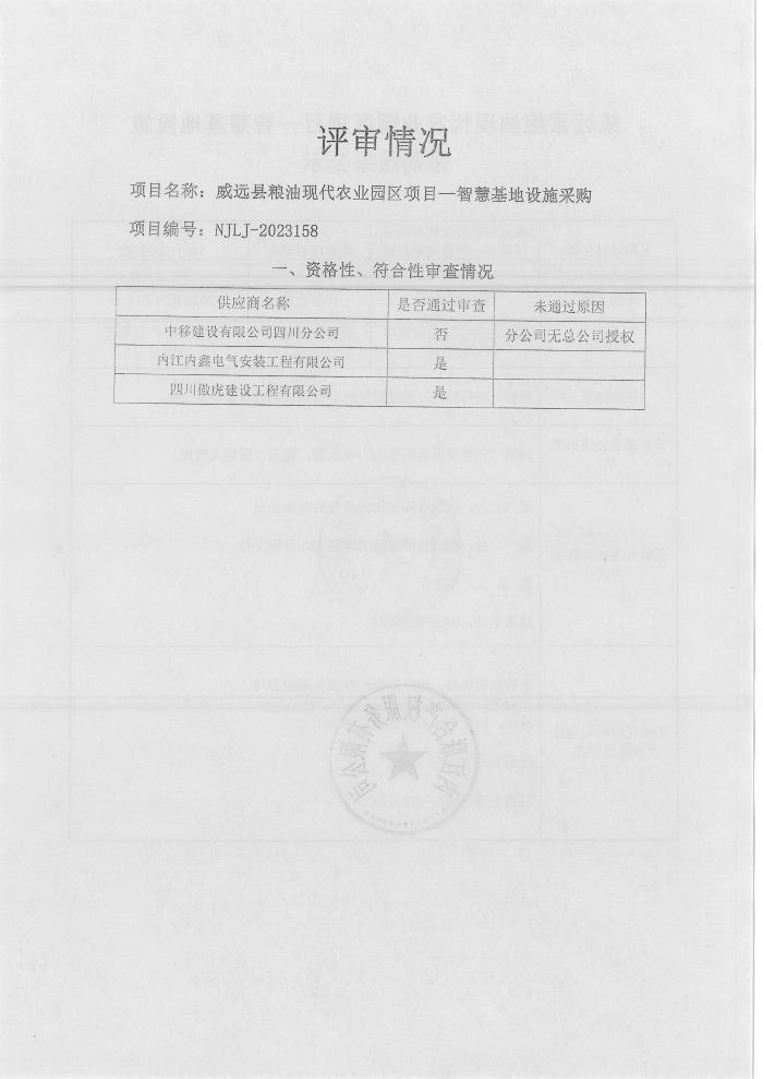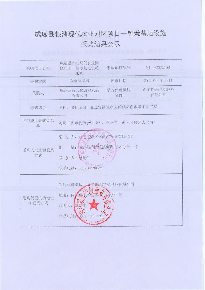 威遠縣糧油現(xiàn)代農(nóng)業(yè)園區(qū)項目—智慧基地設(shè)施采購結(jié)果公示