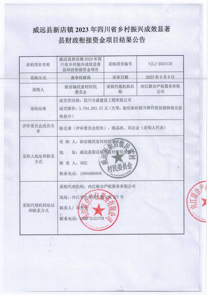 威遠(yuǎn)縣新店鎮(zhèn)2023年四川省鄉(xiāng)村振興成效顯著縣財(cái)政銜接資金項(xiàng)目結(jié)果公告