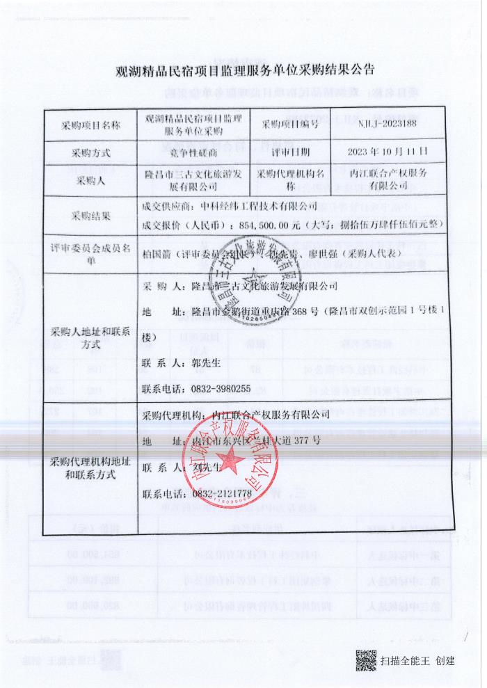 觀湖精品民宿項(xiàng)目監(jiān)理服務(wù)單位采購(gòu)結(jié)果公告
