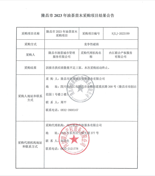 隆昌市2023年油茶苗木采購(gòu)項(xiàng)目結(jié)果公告