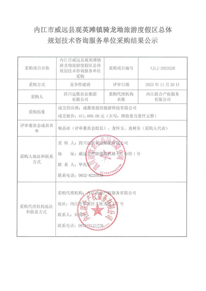 內(nèi)江市威遠縣觀英灘鎮(zhèn)騎龍坳旅游度假區(qū)總體規(guī)劃技術(shù)咨詢服務(wù)單位采購結(jié)果公示
