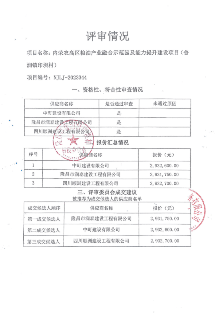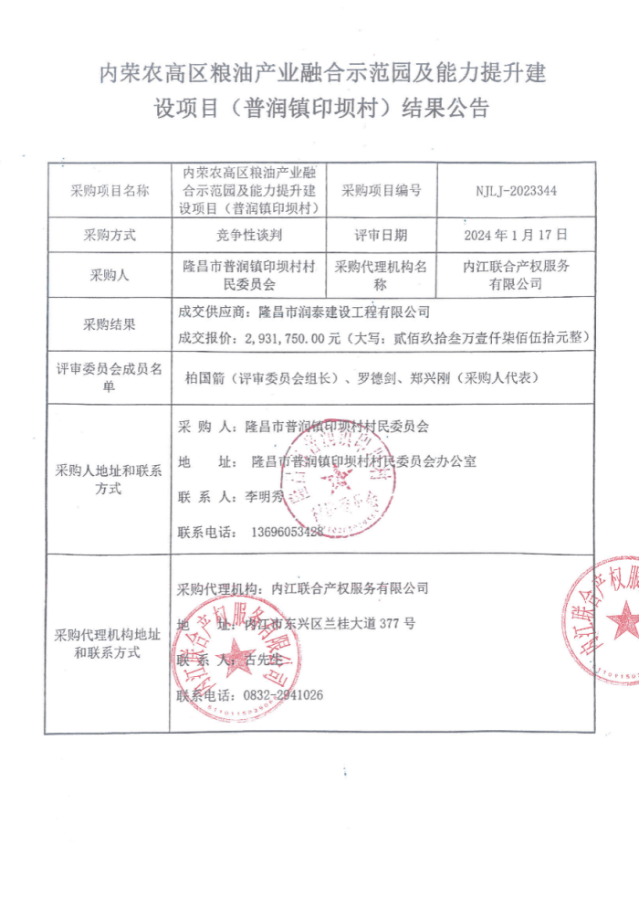 內榮農(nóng)高區(qū)糧油產(chǎn)業(yè)融合示范園及能力提升建設項目(普潤鎮(zhèn)印壩村)結果公告