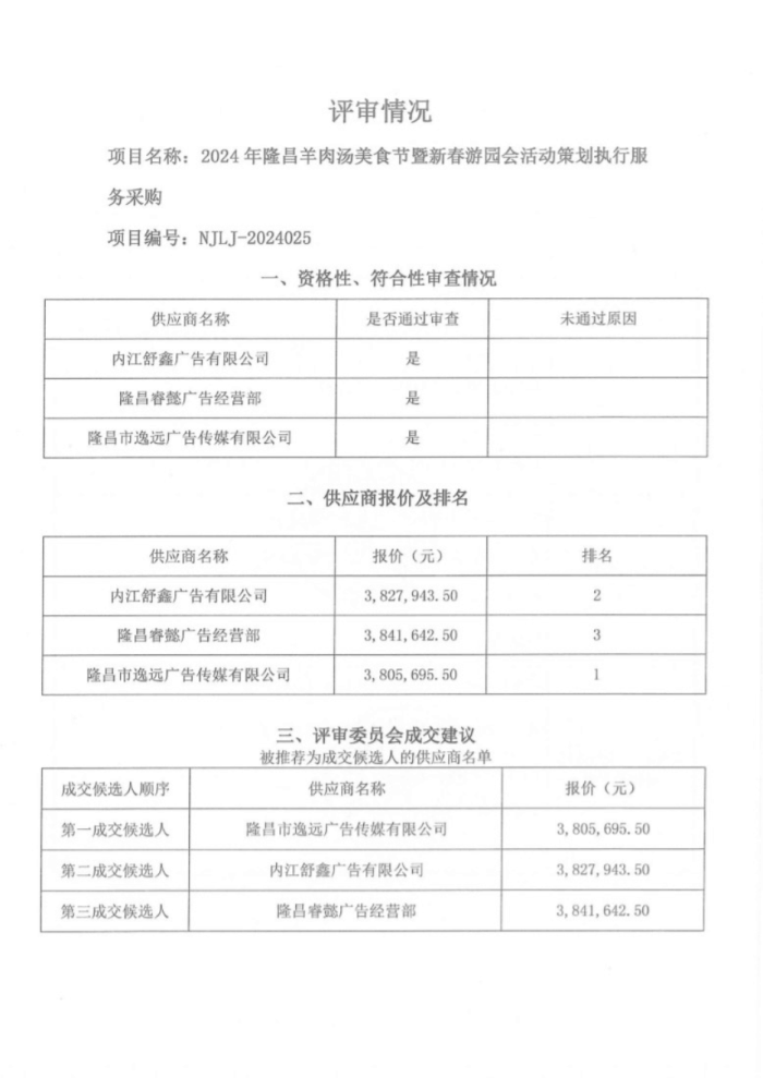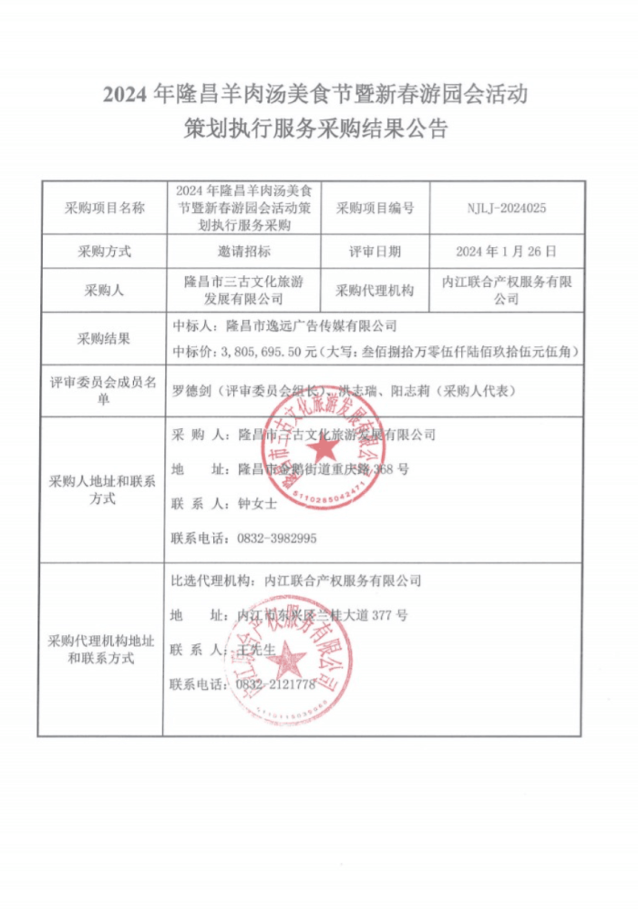 2024年隆昌羊肉湯美食節(jié)暨新春游園會活動策劃執(zhí)行服務(wù)采購結(jié)果公告