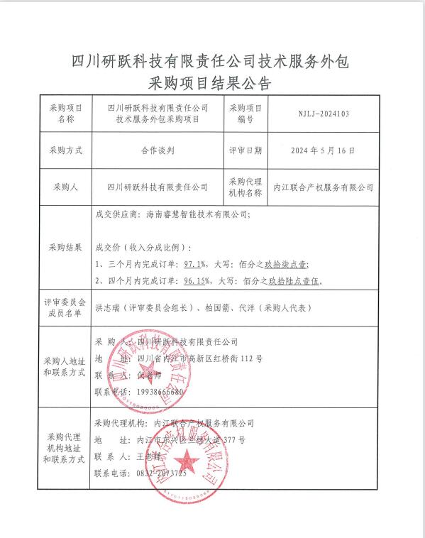 四川研躍科技有限責(zé)任公司技術(shù)服務(wù)外包采購(gòu)項(xiàng)目結(jié)果公告