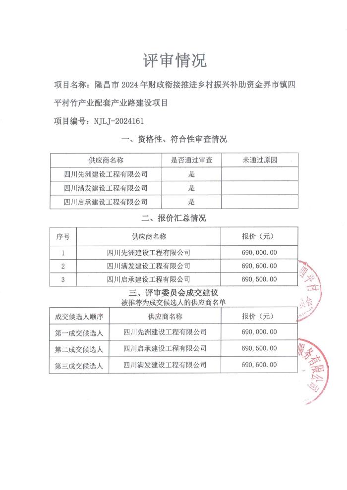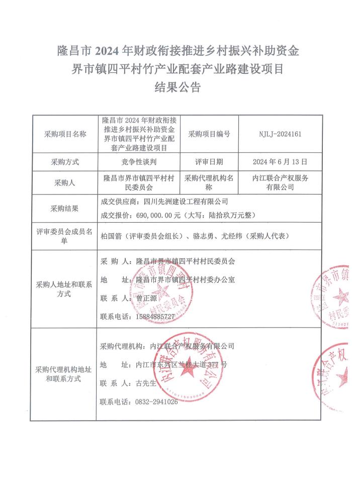 隆昌市2024年財政銜接推進(jìn)鄉(xiāng)村振興補助資金界市鎮(zhèn)四平村竹產(chǎn)業(yè)配套產(chǎn)業(yè)路建設(shè)項目結(jié)果公告