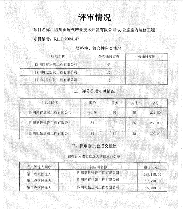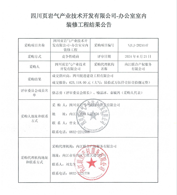 四川頁巖氣產(chǎn)業(yè)技術(shù)開發(fā)有限公司-辦公室室內(nèi)裝修工程結(jié)果公告