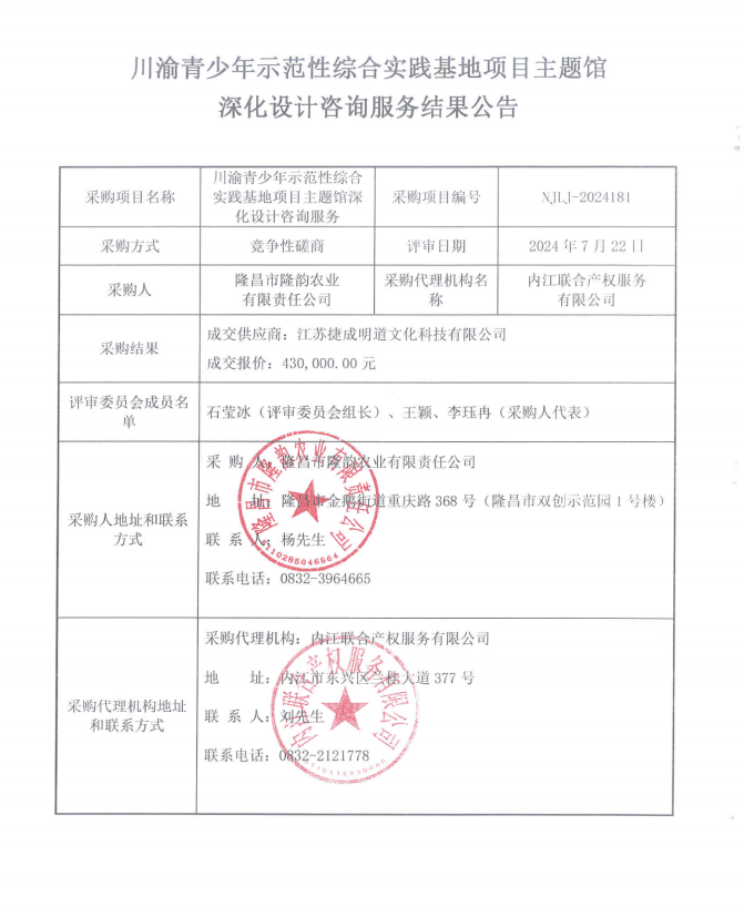 川渝青少年示范性綜合實(shí)踐基地項(xiàng)目主題館深化設(shè)計(jì)咨詢服務(wù)結(jié)果公告