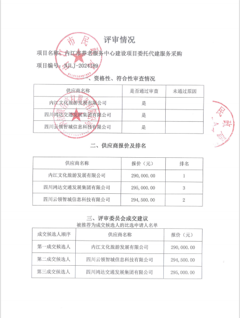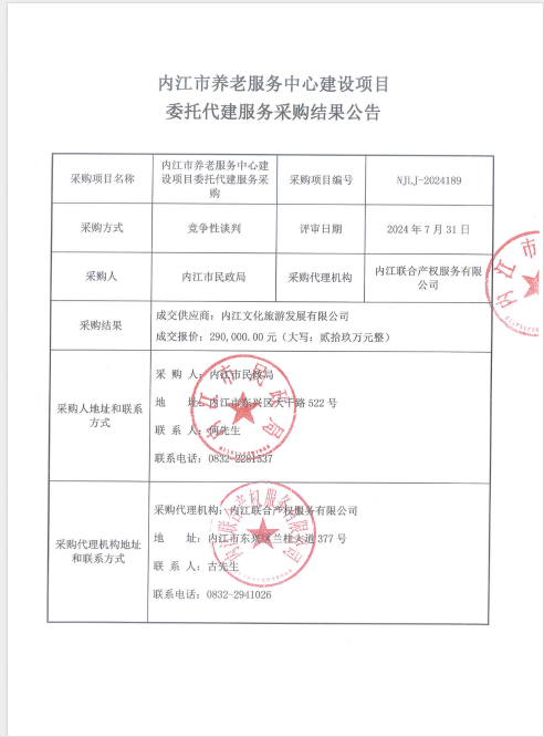 內(nèi)江市養(yǎng)老服務(wù)中心建設(shè)項(xiàng)目委托代建服務(wù)采購(gòu)結(jié)果公告