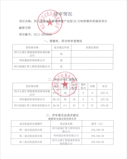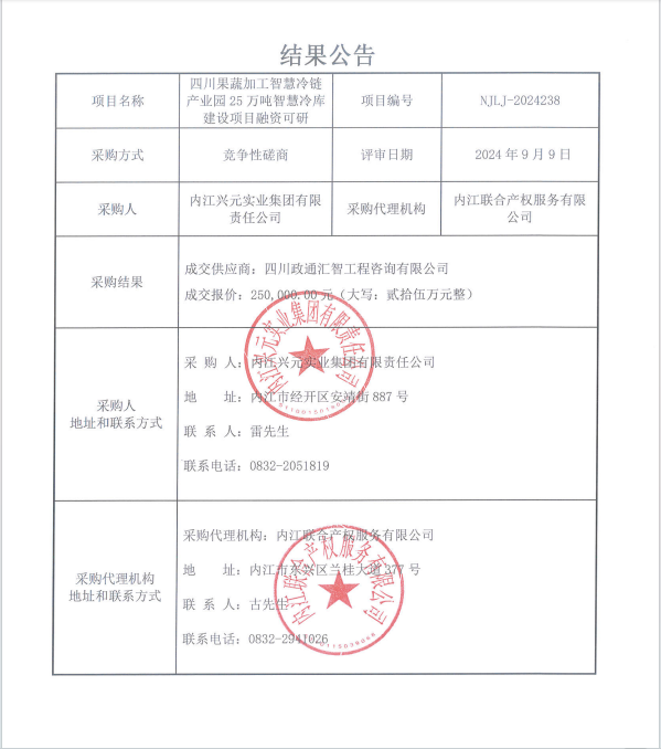 四川果蔬加工智慧冷鏈產(chǎn)業(yè)園25萬噸智慧冷庫建設(shè)項(xiàng)目融資可研結(jié)果公告