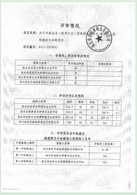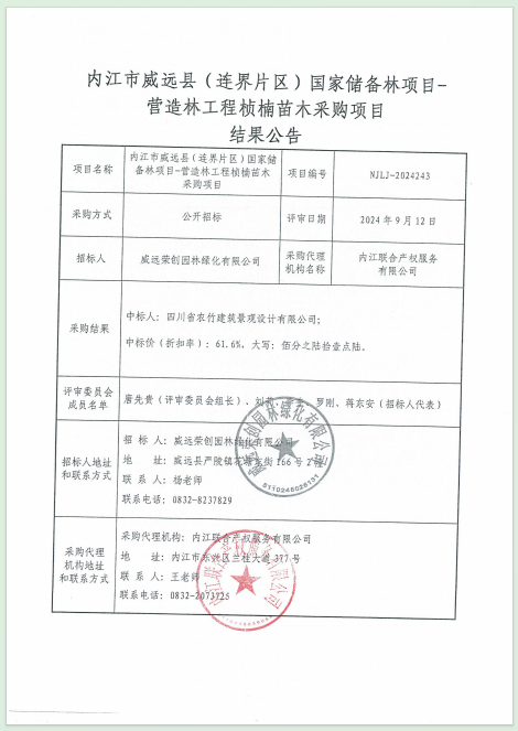 內(nèi)江市威遠(yuǎn)縣(連界片區(qū))國(guó)家儲(chǔ)備林項(xiàng)目-營(yíng)造林工程楨楠苗木采購(gòu)項(xiàng)目結(jié)果公告