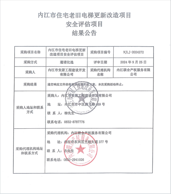 內(nèi)江市住宅老舊電梯更新改造項目安全評估項目結(jié)果公告