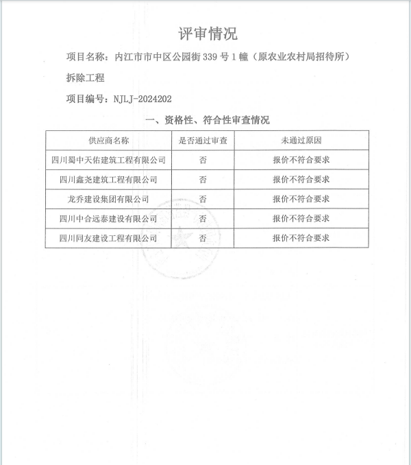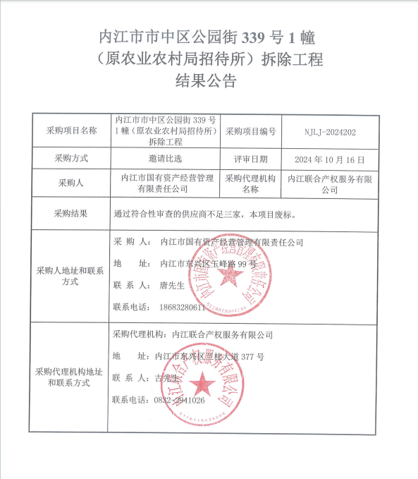 內(nèi)江市市中區(qū)公園街339號1幢(原農(nóng)業(yè)農(nóng)村局招待所)拆除工程結(jié)果公告