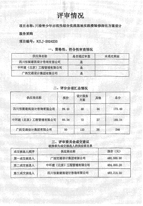 川渝青少年示范性綜合實(shí)踐基地實(shí)踐樓裝修深化方案設(shè)計(jì)服務(wù)采購(gòu)結(jié)果公告